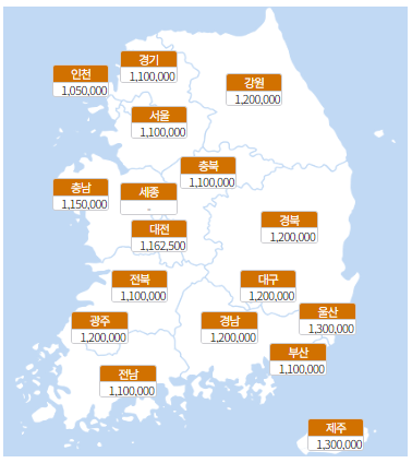 서울부터 제주까지의 임플란트 평균 가격 입니다. 주로 인천이 가격이 가장 저렴한걸로 나타납니다. 또한 제주도와 울산이 130만원대로 가격이 가장 높은걸로 나타납니다. 지역의 평균 가격을 알아야 어떤 치과를 가더라도 가격으로 인해 피해를 보지 않습니다.